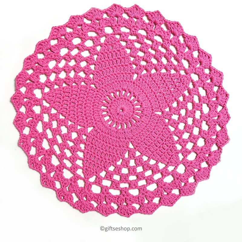 Crochet placemat round, crochet dining table mat pattern, doily coaster. The pattern in English only. A simple and easy to follow pattern suitable for for all including beginners with some experience. You can use any width of yarn for this project. A crochet hook in a size suitable for the yarn you’re using.