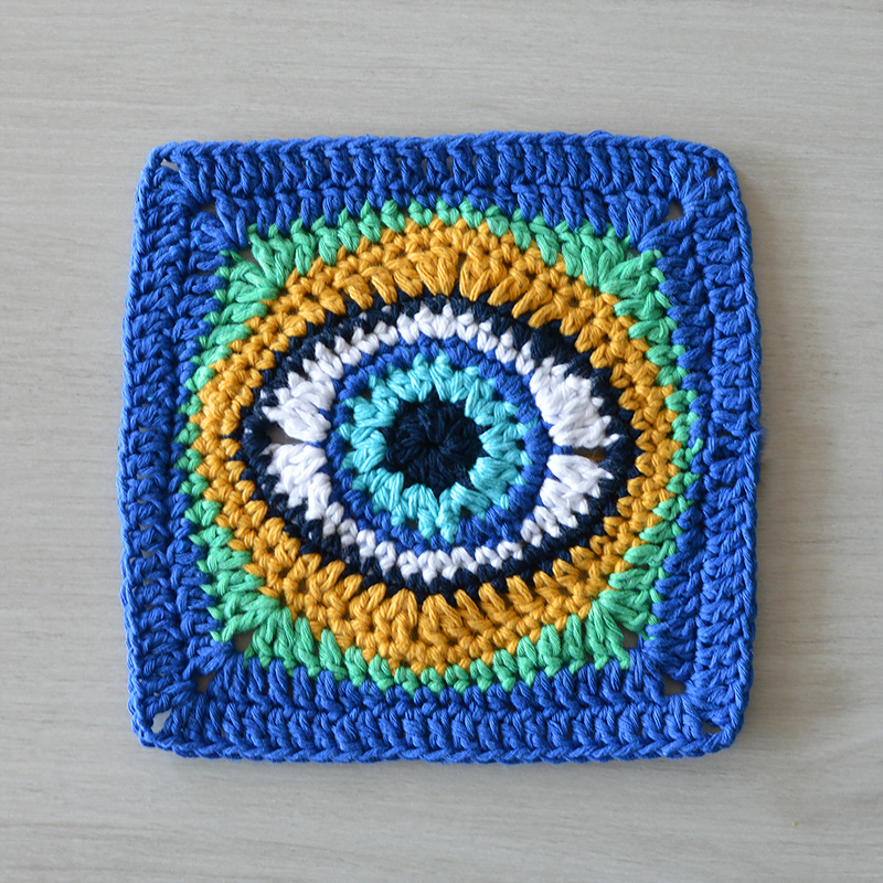 is equivalent to a #4 medium weight. The total yarn used per square is