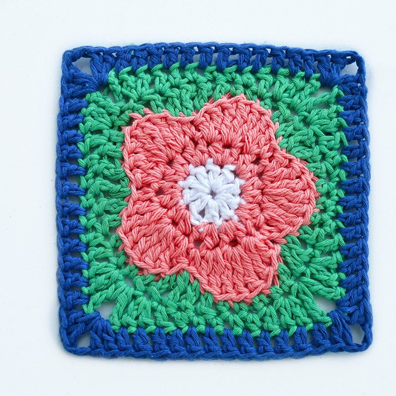 Pattern is written in English and uses US crochet terms. SKILL LEVEL: Advanced Beginner MATERIALS NEEDED: 4 weight cotton yarn -Square – 40 yds total 4.5 mm hook (4 mm will be good too) scissors darning needle STITCHES USED: ch, sc, hdc, dc, edc, tr, sl st
