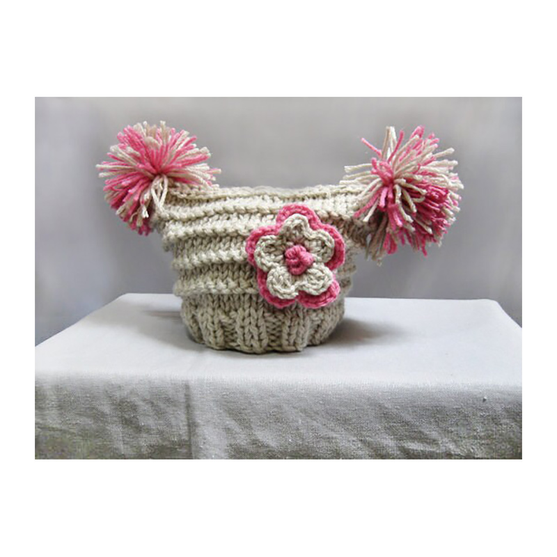 Pattern in PDF for circular needles. Baby hat for 0-3 month and Baby Hat 6-12 months with flower.